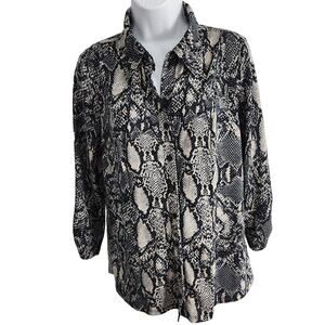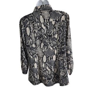 Dressbarn Size L Black & Tan Multi Print Polyester Blouse-VTG Look