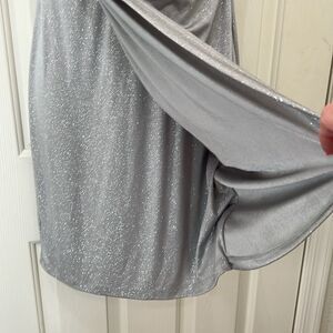 Dressbarn Size Petite 4 Sparkling Silver Metallic Sleeveless Ruched Mini Dress
