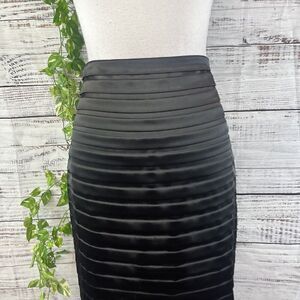 Dressbarn Skirt size 4 Black Satin Layers Pencil Knee Wedding Cocktail Church