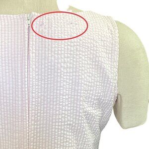 Description: Sleeveless Lined Full Zip Sheath Dress Seersucker Stripe Square Neck