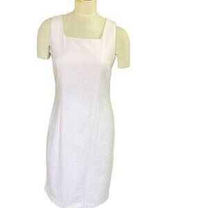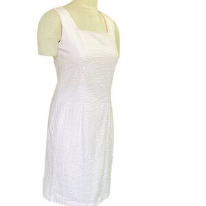Dressbarn Sleeveless Seersucker Square Neck Sheath Dress Sz 6 Pink 142A