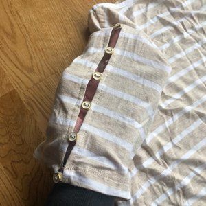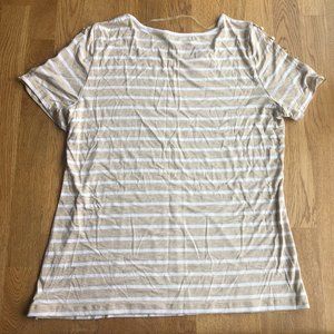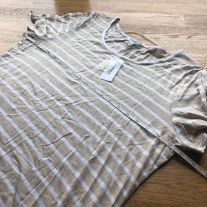 Dress Barn striped top. Super cute! I love the button detail on the sleeves! Size extra large (XL). Brand new, tags still attached. Also has an extra button and thread. Tag calls the color Cream but looks kind of beige/tan to me. Great color for fall! Feel free to ask any questions :) Bundle with other items for the best deal!