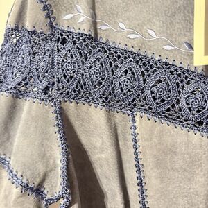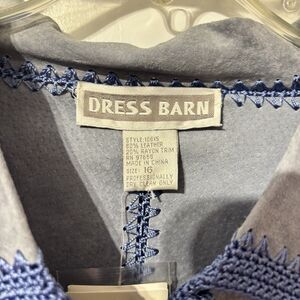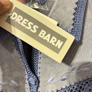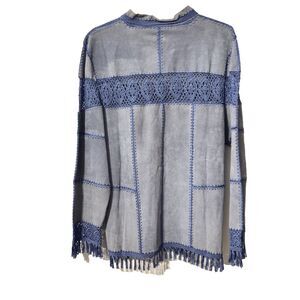 Dressbarn Suede Jacket Blue 16 Long Sleeve Button Up Embroidered Fringed NWT