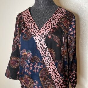 Dressbarn Surplice Wrap Kimono Shirt Leopard Blouse Small