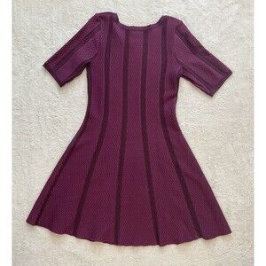 Dressbarn Sweater Knitted Dress Women Size PM Petite M Purple Geometric