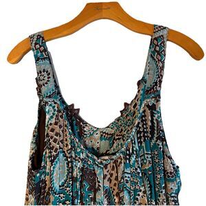 Dressbarn Tank Midi Shift Dress Brown Turquoise Paisley Crochet NEW Sz 16W