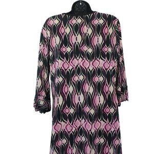 Dressbarn Tunic Top Blouse Crinkle Medium 3/4 Sleeve Pink Black Tan Size Medium