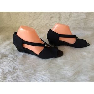 Dressbarn Wedge Peep Toe Ankle Strap Slip Black Shoes Size 7W Free shipping on orders over $75