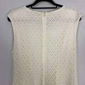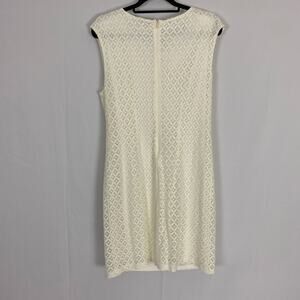 Dressbarn sheath dress, white sleeveless cocktail dress, beaded neckline formal dress, preowned size 14 women’s dress, cotton blend evening wear, elegant white sheath dress, classic sleeveless formal wear, women’s chic party dress, flattering size 14 cocktail wear, timeless formal sheath dress