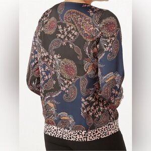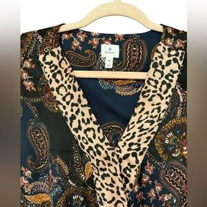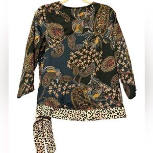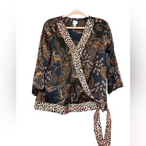 Dressbarn Wild Thing Print Faux Wrap Tie Front Blouse