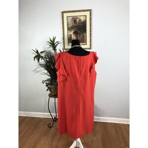 Dressbarn Woman Dress Plus 22 Fluter Sleeve Boho Preppy Boat Neck Zipper Red