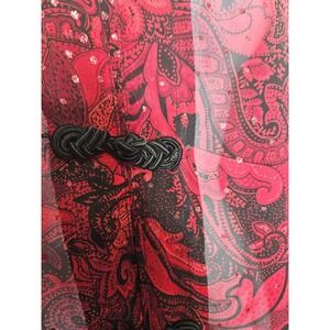 Dressbarn Woman Red Black Paisley Sheer Blouse Top Frog Closures 14/16 Sequins