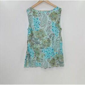 Dressbarn Woman Turquoise Paisley Print Sleeveless V Neck Tunic Top Plus Size 2X