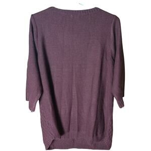 Dressbarn, Women 2x, Ox Blood/ Burgundy (Purple/ Red/ Brown Hue)-- Rounded Neck, Lattice/ Diamond Knit Pattern Style, Zipper Accent, 3/4 Length (Approx.) Sleeves, Sweater