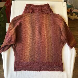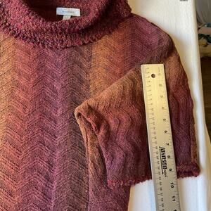 Dressbarn Women Sweatshirt PETITE M Burgundy Chevron Short Sleeve Turtleneck