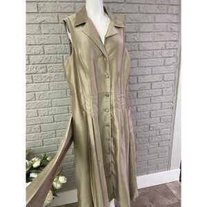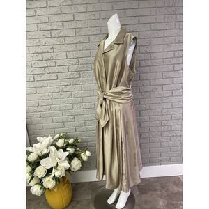 Dressbarn Women Sleeveless Pleated Button-Down Belted Midi Dress Size 20