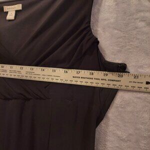 Dressbarn Women's 12 Black Sleeveless V Neck Fit and Flare Dress is a classic preppy staple. Ideal for career or evening wear, this timeless black dress features a flattering surplice neck and zip closure.