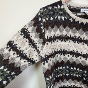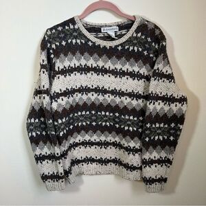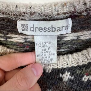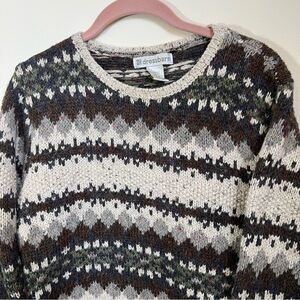 Vintage Dressbarn women’s gray and black patterned wool-blend crewneck sweater.