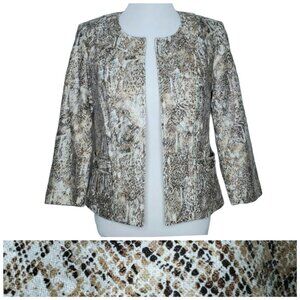 Dressbarn Womens Blazer Size Small Snakeskin Pattern 3/4 Sleeve Linen Blend