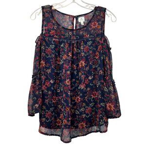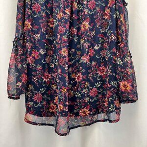 Dressbarn Women’s Cold Shoulder Floral Peasant Top Navy/Multi Size Small Petite