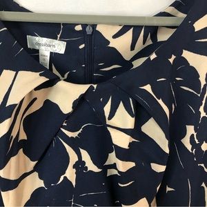 Dressbarn Women’s Dress Sleeveless Scoop Neck Pleated Bodice Navy/Cream