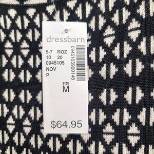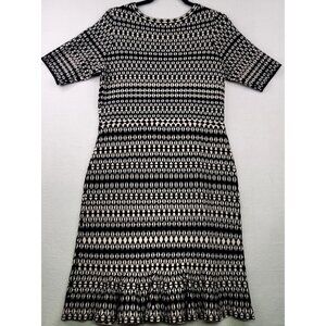 Dressbarn Womens Geometric Print Knit Dress Black Cream Medium