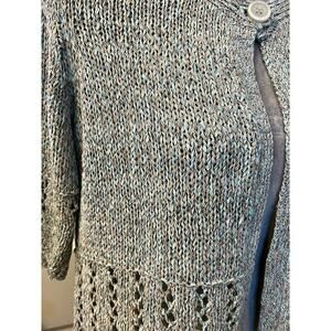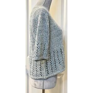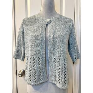 Dressbarn Womens One Button Cardigan Short Sleeve Open Knit Crewneck Gray Blue S