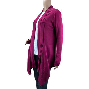 Dressbarn Women's Pink Rib Knit Open Front Draped Cardigan Sweater Size L