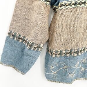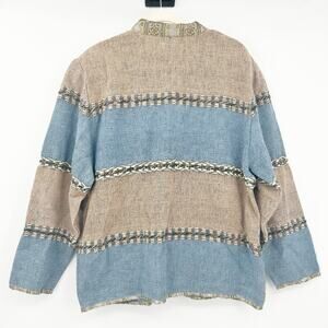 Dressbarn Womens Vintage Artsy Boho Floral Embroidered Tapestry Jacket in Tan and Blue. Size large.