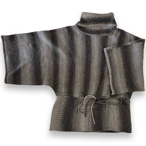 Dressbarn Wool Blend gray charcoal knit sweater turtleneck pullover kimono style