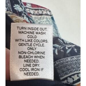 Charming and free-spirited, this Dressbarn boho blouse features a patchwork mix of floral and paisley prints in rich fall hues of mustard, navy, rust, and teal. Lightweight and flowy with a flattering V-neckline and relaxed silhouette, it’s perfect for layering or wearing solo with jeans or skirts. A stylish choice for a cozy, eclectic, or artsy wardrobe.