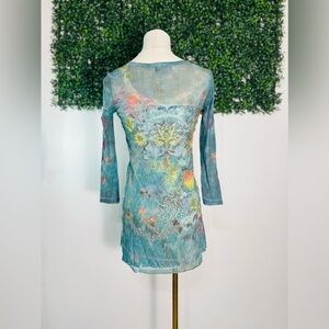 Dressbarn Y2K Lace Tunic Top Small Green Floral Sheer Sleeves Fairy Grunge