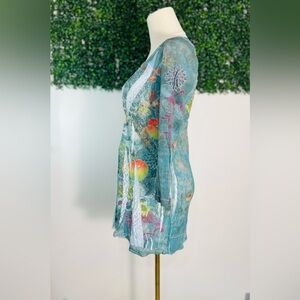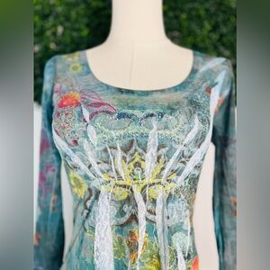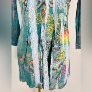 Dressbarn Lace Tunic Top Size Small Green Floral Sheer Sleeves Fairy Grunge