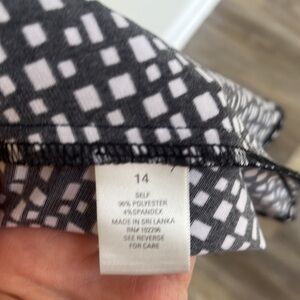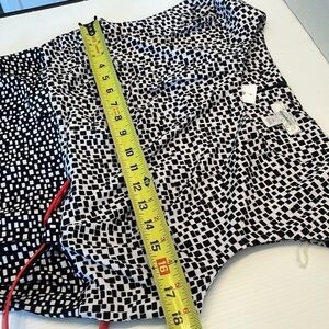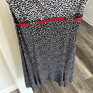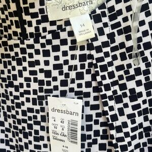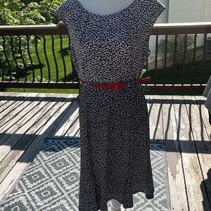 Dressbarn black white swing dress red belt cap sleeves geometric print NWT midi
