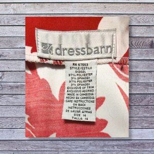 Red & White floral sleeveless blouse from Dressbarn in Excellent Used Condition, size 14. 97% Polyester, 3% Spandex, made in Cambodia.