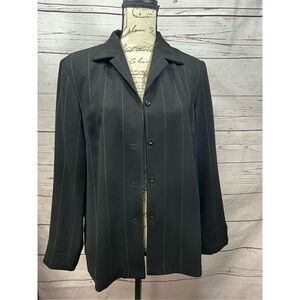 Dressbarn size 12 black with white pinstripes button down blouse - 2590