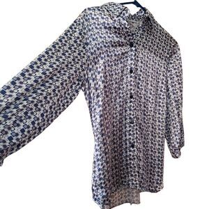 Dressbarn Button Blouse Geometric Collared Tie Belt