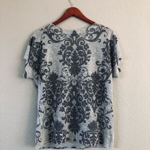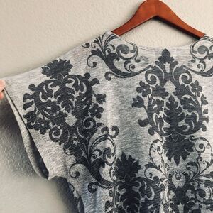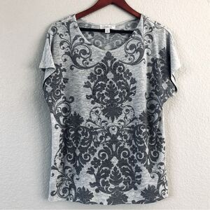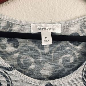 Women’s size medium Dress Barn gray metallic thread embellished bling studded top with loose fitting draped sleeves. Lightweight stretchy material. Barely worn and in like new condition, clean nonsmoking home.