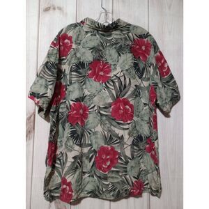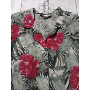 Dressbarn Shirt Ladies 2x Army Green Red Floral Button Front Short Sleeve 100% S
