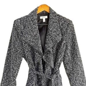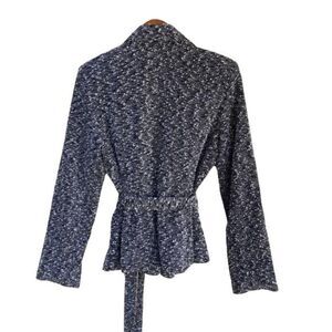 Dressbarn Waterfall Textured Nubby Knit Tie Waist Blazer Black Speckled Sz M