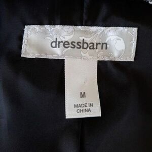 Fully lined 3 hook closure waterfall front tie waist blazer in black and white by Dressbarn.