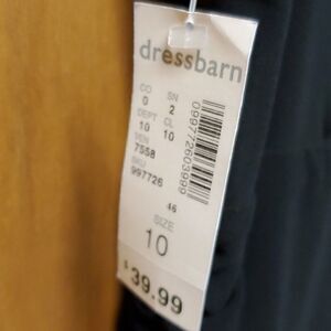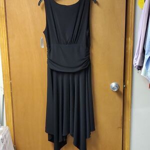 very nice, new dress, from dressbarn, size 10, black in color. gathered sides and ruching at sides., high low at bottom