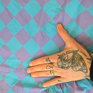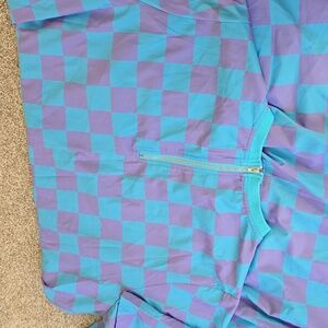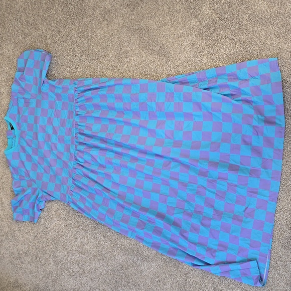 checkered dress oversized blue and purple minor speck stain shown