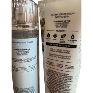A luxurious fragrance mist and body cream set offering an elegant blend of pear blossoms, ivory gardenia, and satin woods. Hydrates and nourishes skin.