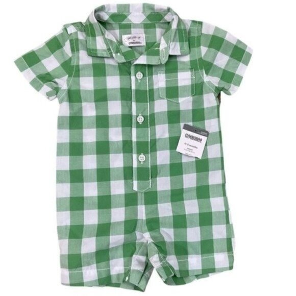 Dressed Up By Gymboree plaid green & white romper size 0-3 months