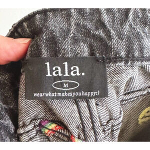 Dressed in LALA Black Wide Leg Jeans with Colorful Embroidery
