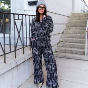 Dressed in LALA Hi-Rise Interstellar Astronaut Wide Leg Plisse Pant in Black & White. Elastic waist, side seam pockets. Like new condition. Pants only.