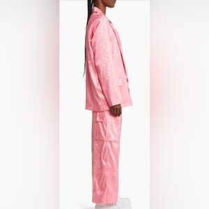 Chic pink velvet pants and jumpsuit set. Stylish and comfortable. Perfect for any occasion.