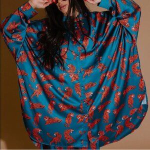 Dressed in LALA Wild Woman Teal Satin Playsuit Set