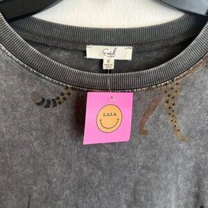 Oversized charcoal t-shirt dress with cheetahs all over. Side pockets.